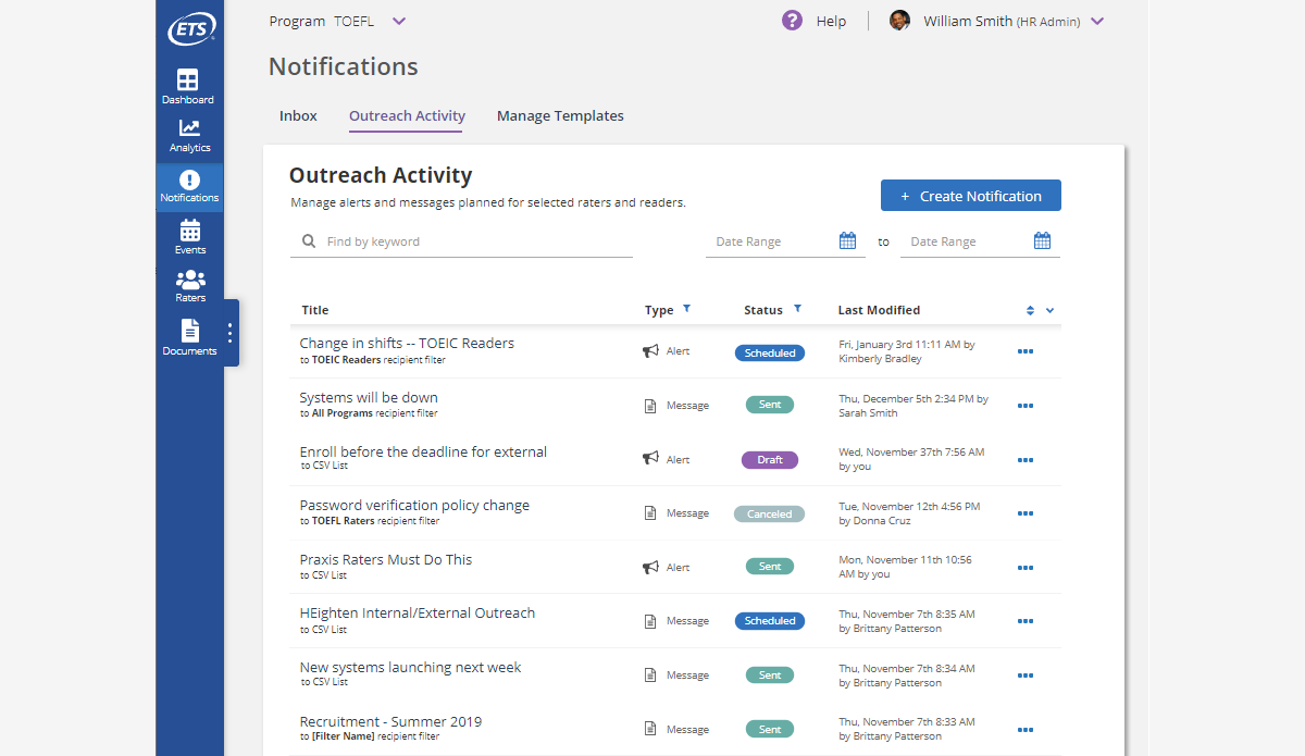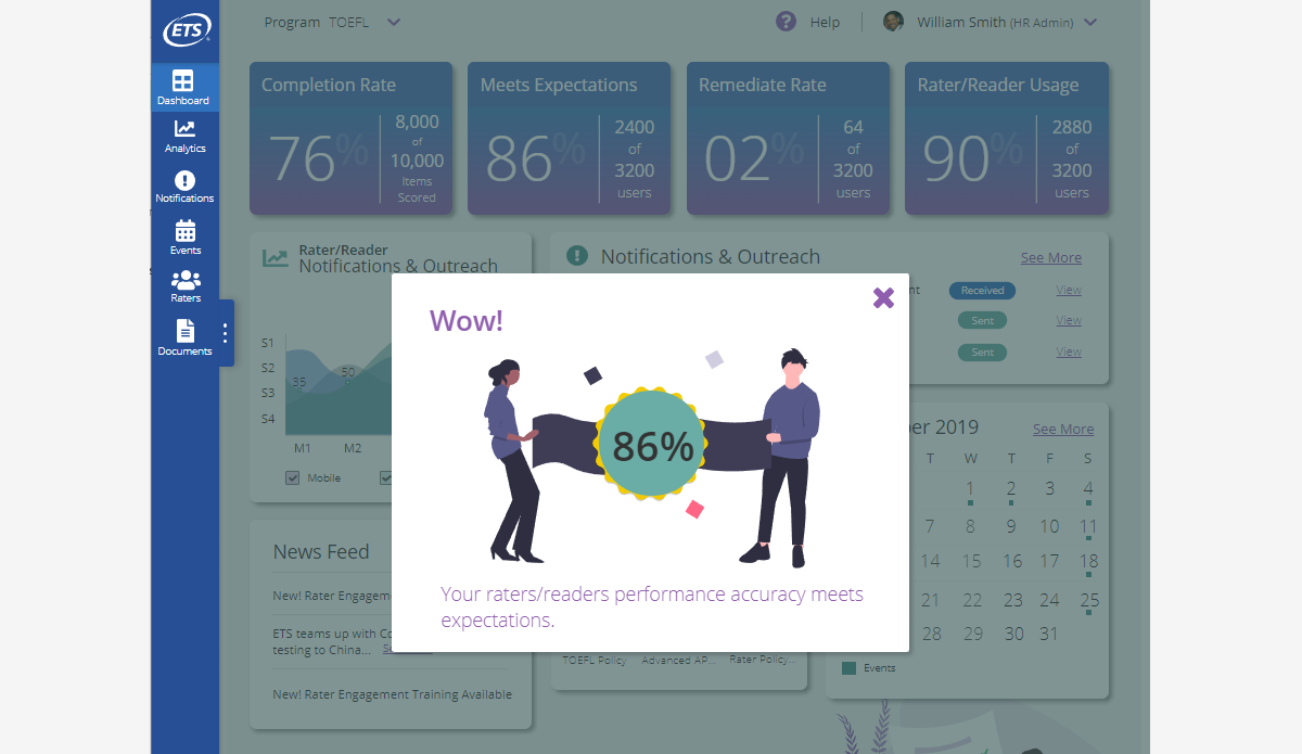 Create a comprehensive online environment to manage Human Resource interactions including onboarding, training, evaluations, and assignments. Administrators also needed the environment to manage messaging and communications with the Scoring Raters. - Solution: